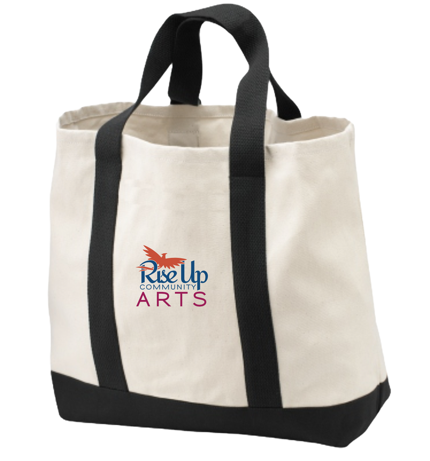 Enjoy this natural/black Canvas Tote, only available through Rise Up Community Arts! Carry necessities with a touch of traditional style.